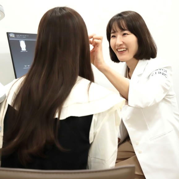 ヤヨイクリニックは、「なぜその悩みがあるのか」を丁寧に説明する、独自のカウンセリングシステムが魅力です。初回カウンセリングでは、お客様の話をじっくりとお伺いすることはもちろんのこと、そもそもの老化の仕組みや原因について、時間をかけてお伝えいたします。