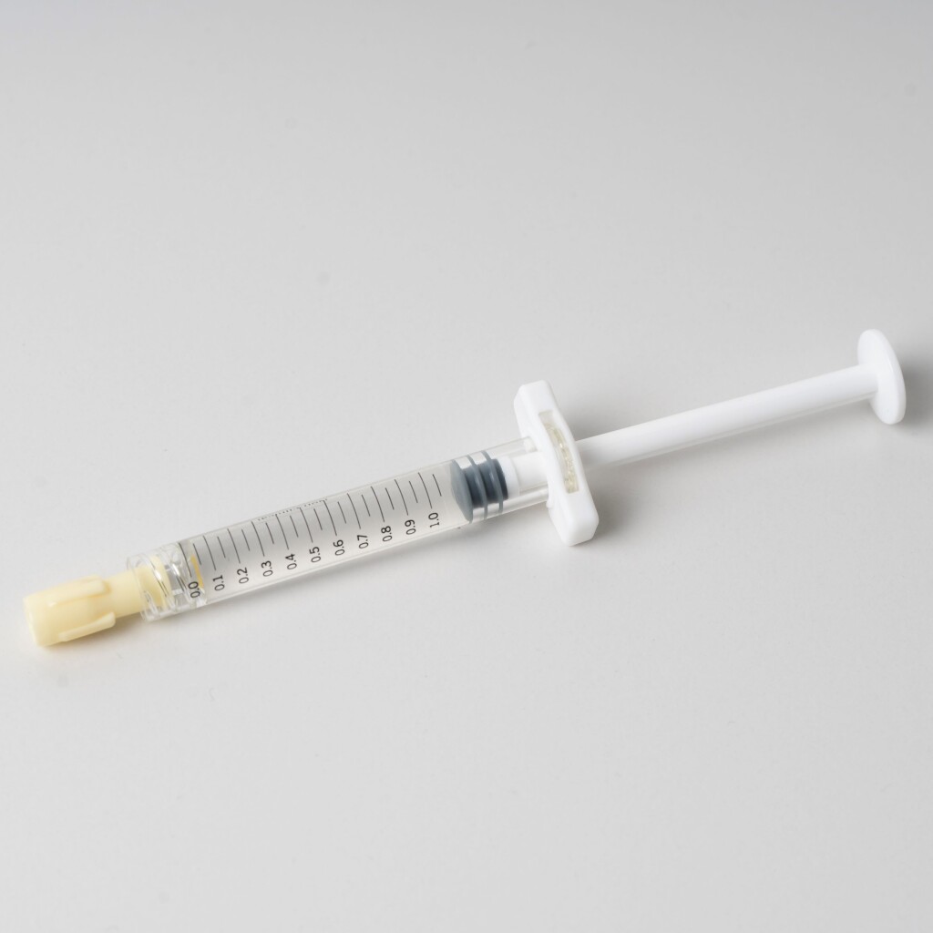 ベビーダームは、ヒト由来かつ非架橋のサラサラとした製剤であるため、組織へのなじみが良く、注入後の凹凸や異物感といったリスクが低いのも特徴です。特殊な極細針で真皮浅層へ均一に注入できるため、目元の小ジワや目の下のクマなど、皮膚が薄くデリケートな部位にも適しています。単なるボリュームアップに留まらず、なめらかで自然に肌の構築促し、質の高いエイジングケアが目指せます。